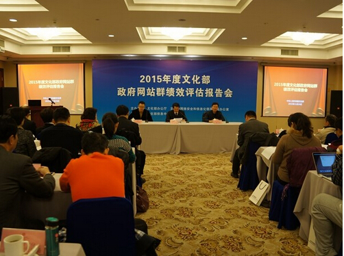 2015年度文化部政府网站群绩效评估报告会在京召开,图为会议现场。
