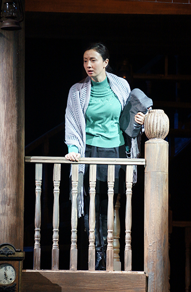 图为话剧《长夜》演员陶虹在彩排中的表演