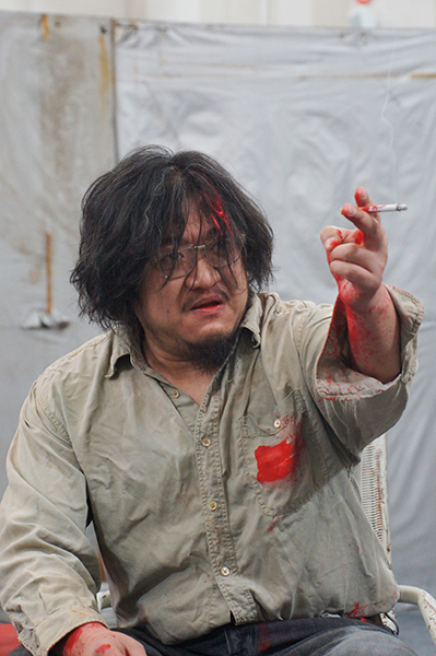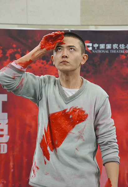 图为话剧《红色》演员陈明昊在彩排中的表演