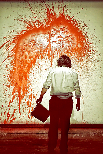 王晓鹰导演独具匠心地将绘画场景用音乐呈现,艺术家手中的笔刷似乎变为交响乐的指挥棒。罗斯柯的美学哲理,坎的激烈反击,洁白的画布前两人挥洒着血红的油彩,如同争论时一样富有激情,演员的能量和张力被旋律和画笔点燃,而每个人内心深层次的回忆与思索,也表现的令人震撼。随着人物纠葛和思辨交织,全剧进入高潮,罗斯科在挣扎后将割开的手腕插入油彩桶,他的生命与艺术似乎在这一刻融在一起,红色的油彩和血液浓郁混合。他将这一桶红色泼墨于画作,在观众面前呈现出极为具有心灵冲击力的场景。
