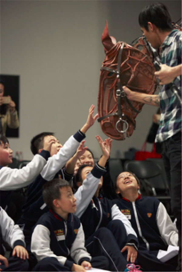 舞台剧《战马》中文版联合知名美术教育机构宝贝计画、灯市口小学、北京大学光华管理学院EMBA班、海淀区戏剧项目剧场教育、北京师范大学实验小学,在中国国家话剧院的《战马》排练厅里,举办了多场针对不同人群,不同年龄,不同需求的“《战马》体验课”,这标志着《战马》体验课进入到大、中、小学的教育领域,并且从小学到中学,再到大学和EMBA都有相应的体验课程设置,全方位覆盖受教育人群。