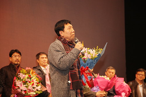 图为演员韩童生作为退休艺术家代表发言。孙路 摄
