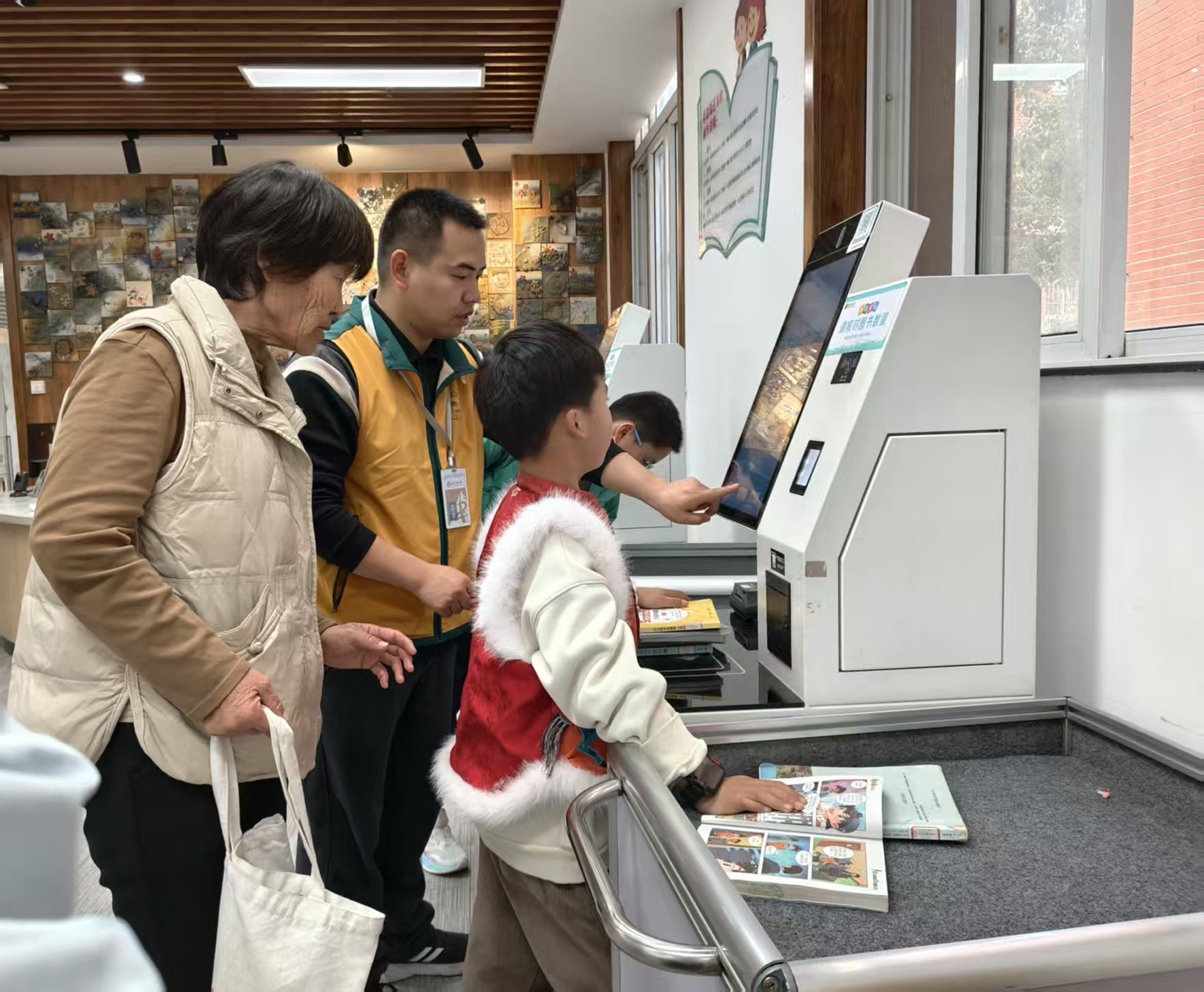 楼上的服务台,李玲已经开始忙碌。电话铃响了,那头是一位读者,语气里带着不确定:“今天……开门吗?”“开的,我们从除夕到初七,天天开放。”李玲声音清亮,末了还加一句“欢迎您来”。放下电话,她又迎向一位走过来的读者。