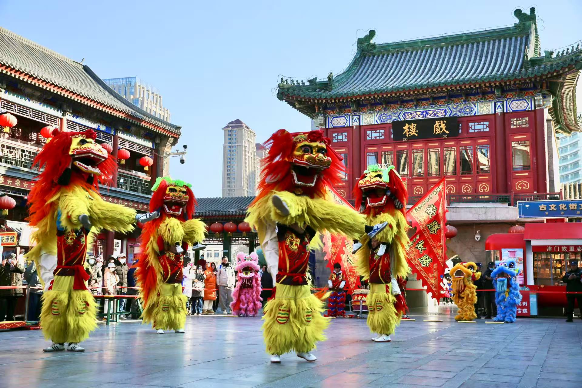 天津市南开区古文化街举办民俗花会展演活动,热闹灵动的舞狮让年味扑面而来。 魏 进 摄