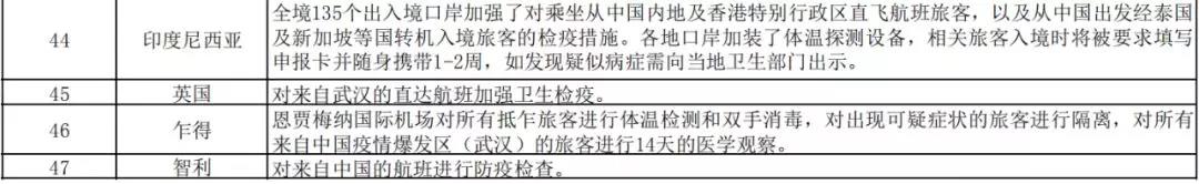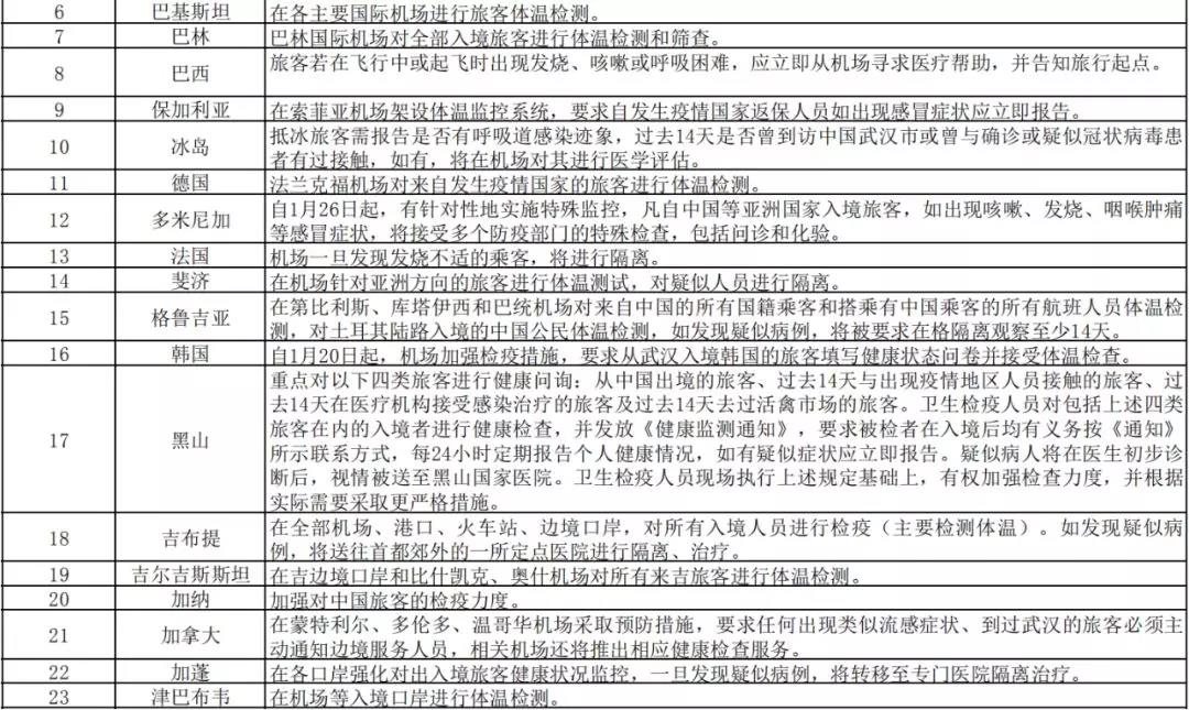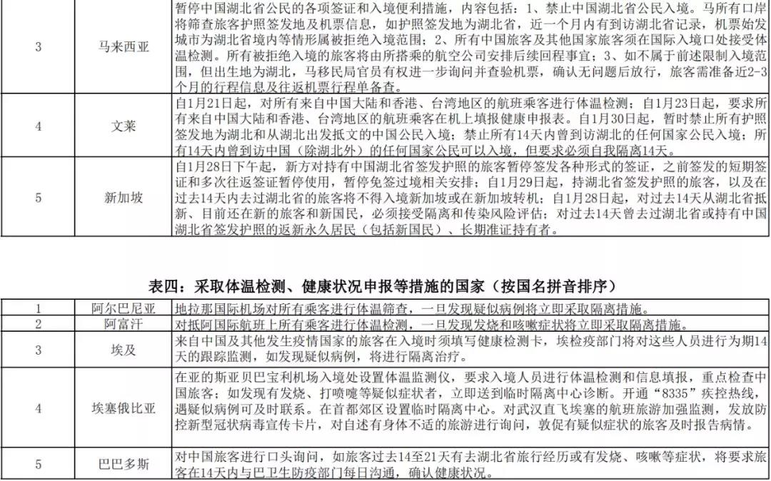 外国有关肺炎疫情防控的入境管制措施汇总表