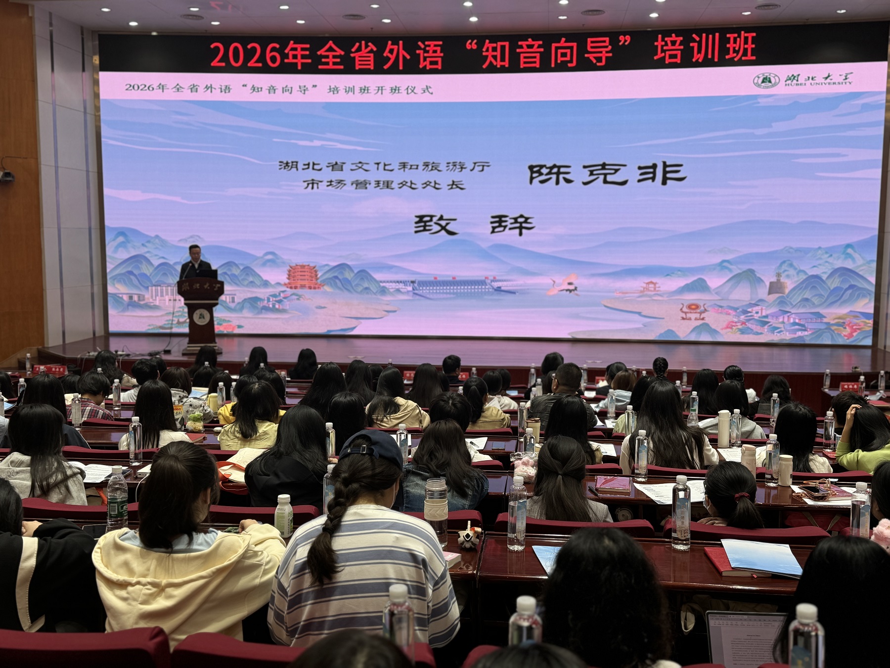 4月11日,湖北省文化和旅游廳與湖北大學聯合舉辦2026年全省外語“知音向導”培訓班,來自全省各市州14所高校外國語學院、旅游學院和相關旅游機構的200名學員參訓。他們將入選湖北省文旅行業外語“知音向導”人員信息庫,為入境游客提供多語種輔助性服務,助力湖北加快建設世界知名文化旅游目的地。