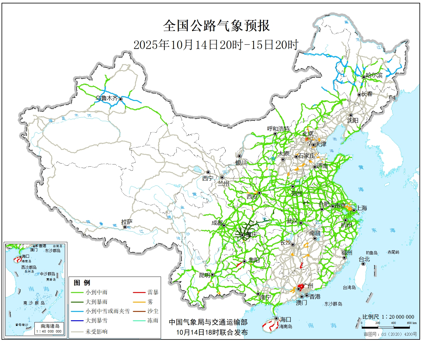 | 下一篇: 中国气象局与交通运输部2025年10月13日联合发布全国主要公路气象预报 |