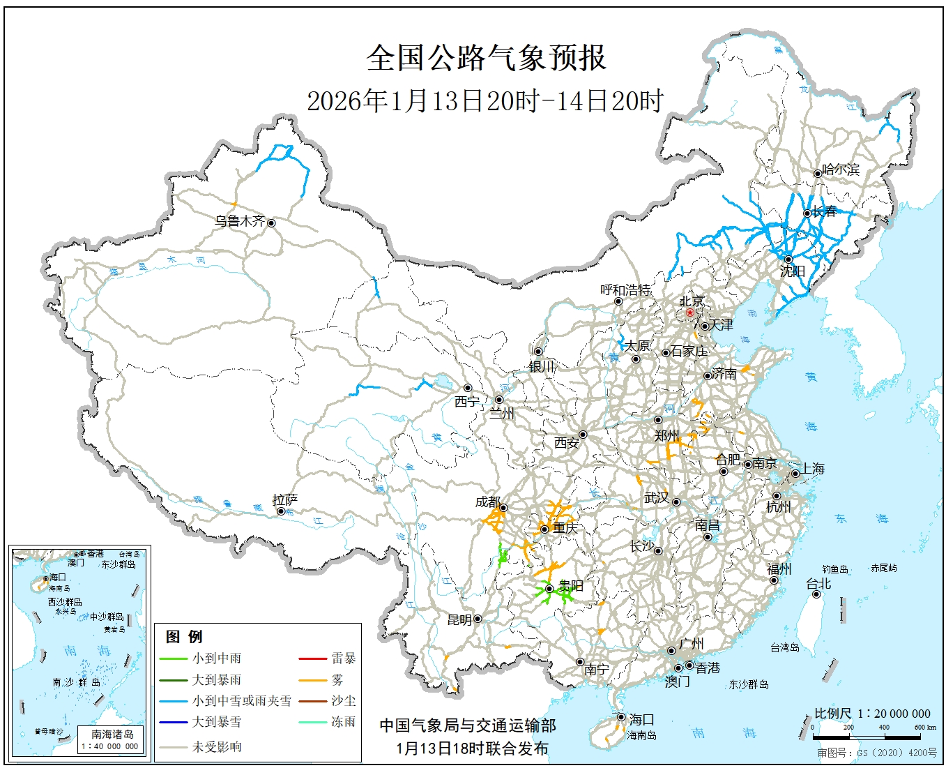 | 下一篇: 中国气象局与交通运输部2026年01月12日联合发布全国主要公路气象预报 |