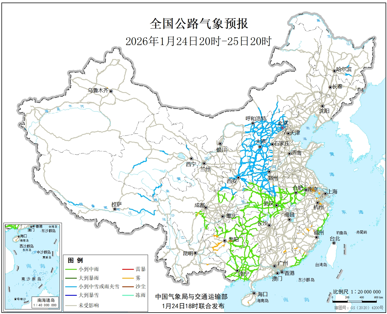 | 下一篇: 中国气象局与交通运输部2026年01月23日联合发布全国主要公路气象预报 |