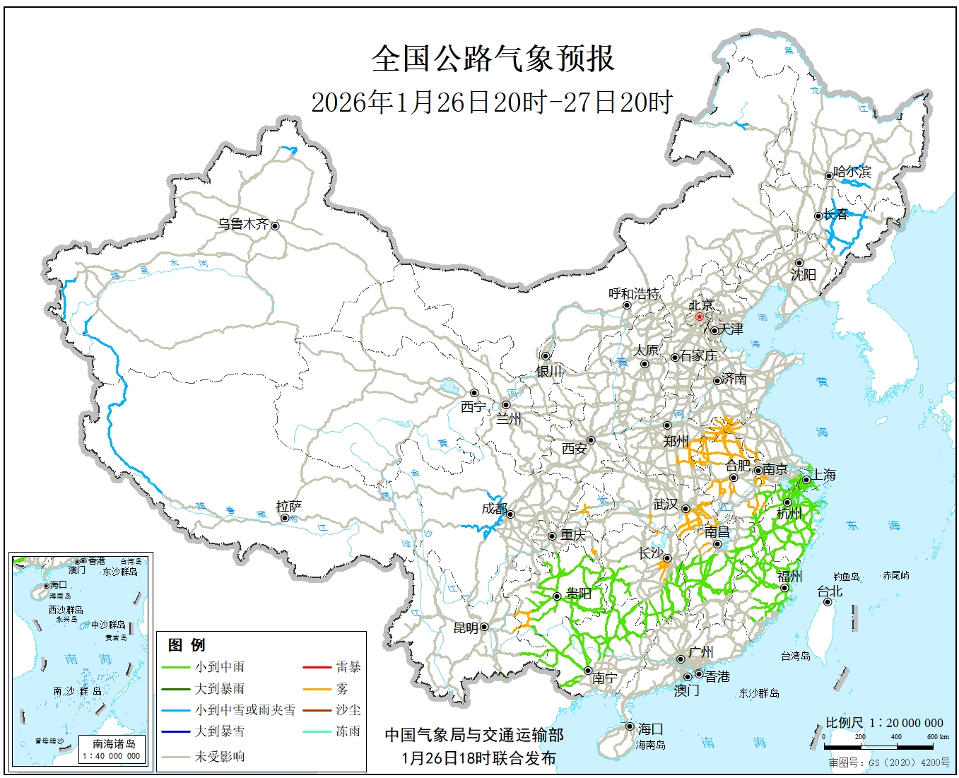 | 下一篇: 中国气象局与交通运输部2026年01月25日联合发布全国主要公路气象预报 |