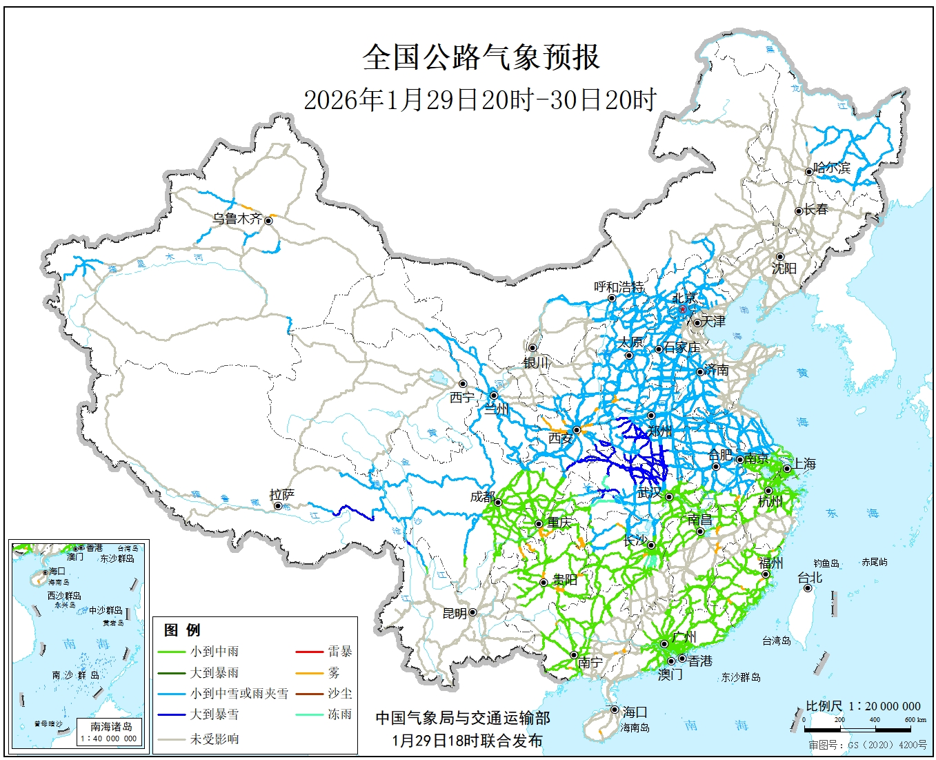 G55二广高速内蒙古白音查干—蒙晋省界—山西大同—河南济源—洛阳段、河南南召—南阳段、湖北荆门—鄂湘省界段