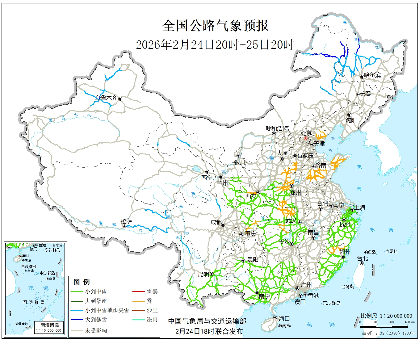 二广高速(G55)山西长治—高平—晋城段、河南济源—洛阳—大安段、河南南阳—邓州—豫鄂省界—湖北襄阳—宜城—钟祥段、湖北荆州—鄂湘省界段