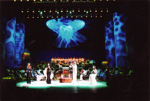 大型民族音乐会《岁月如歌》 依照确定的经营方针,剧院先后创排了《四季情韵》、《紫气祥云》、《五洲风情》等多部大型歌舞晚会;《岁月如歌》民族音乐会、《经典电影歌曲》视听交响音乐会等深受观众喜爱的节目。结合歌剧现状,充分利用剧院资源,2010年推出以多种艺术门类相结合的新形式歌舞剧《在那遥远的地方》,这部作品以王洛宾的传奇经历为原型,融入了新疆、西藏等民族元素,运用现代声光电的舞美效果烘托全剧,使传统文化与现代社会的观众相适应。作品一经推出,打破了歌舞剧没有市场的定律,仅一年时间演出37场,创造了剧院近几年歌舞剧演出场次的最高纪录。 |