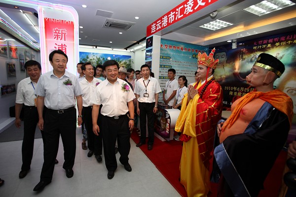7月10日上午,2010连云港·国际西游记文化(旅游)节文化产业博览会在该市文化艺术中心隆重开幕。江苏省委常委、宣传部长杨新力出席开幕式。 2010连云港·国际西游记文化(旅游)节文化产业博览会由连云港市委、市政府主办,市委宣传部、市发改委、市文广新局等单位联合承办。活动通过文化项目推介与招商、文化产品展览与交易、论坛、演出等相互配套的多种活动载体,融文化产业、书画艺术、美术工艺品、非遗产品、民俗产品、古玩、文化设施建设与运营投资、艺术创演和活动推广、文化团队和文化服务等方面的展示交易内容为一体,旨在充分挖掘连云港优势文化资源,深度包装文化产业项目,搭建本地文化资源与市内外投资的合作平台;展示连云港文化产业发展成果和城市形象,推介连云港文化产品;搭建西游记文化产品交易平台,通过持续努力,将连云港逐步打造成为全国西游记文化产品集散中心。