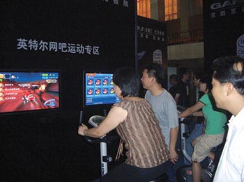 在8月11日召开的英特尔2006中国·吉林网络文化节上,在英特尔的展区内,一款集健身、游戏于一体的自行车吸引了很多参观者前来体验。 王新 摄