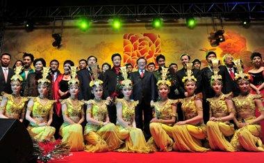 中国文化网消息:2月19日晚,“文化中国?四海同春”艺术团在马德里体育宫为广大旅西侨胞、马德里大区政府官员和西当地民众呈现了一场精彩纷呈的演出,为西班牙“2011欢乐春节”活动降下了帷幕。中国驻西班牙大使朱邦造、西班牙华商协会会长杜林飞、马德里大区移民局副局长加布里埃尔和“文化中国?四海同春”艺术团团长黎国如先后致辞。 朱邦造大使首先代表中国驻西使馆向广大侨胞和西各界人士致以新春的问候和美好的祝愿!朱大使说,此次由国侨办和总政共同组织的“文化中国?四海同春”艺术团走进西班牙慰侨演出,不仅将慰藉旅西游子的思乡之情,也将展示中华文化的丰富多彩和博大精深,增进西班牙人民对中华文化的了解和喜爱。“文化中国?四海同春”是中西两国文化交流的一次良好机会,透过来自中国40多位优秀艺术家的精彩演出可以看到一个蓬勃发展的中国,一个真实、鲜活、生动的中国,一个期望被我们的欧洲伙伴西班牙所了解和接受的中国。与此同时,朱大使对这次活动的承办单位-西班牙华商协会和西班牙华侨华人协会表示衷心感谢。