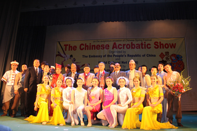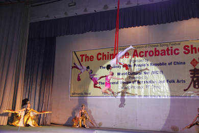 中国文化网消息:2011年2月23日晚,2011“欢乐春节”系列活动的亮点项目“浙江杂技团访尼杂技演出”在加德满都尼泊尔学院演出大厅举行。尼泊尔副总理阿迪卡里、中国驻尼泊尔大使邱国洪、尼文化部秘书多特尔、尼政府高官、文化界人士、友好组织代表、孔子学院师生、驻尼汉语志愿者教师、旅尼华人华侨等约1200余人出席活动。阿迪卡里副总理在开幕式上致辞,对来访的浙江杂技团表示欢迎,并向大家致以中国春节的祝福。他回顾了中尼两国的传统友谊,重申了两国友好关系的重要性,对中国在各个领域给予尼泊尔的支持表示感谢。他希望,未来中尼两国能在政治、经济、文化等领域开展更加密切的交流,巩固两国人民之间的友谊。