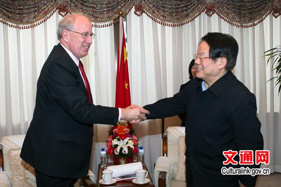 3月19日,文化部部长蔡武在京会见了来华访问的美国亨廷顿图书馆馆长郭必略。