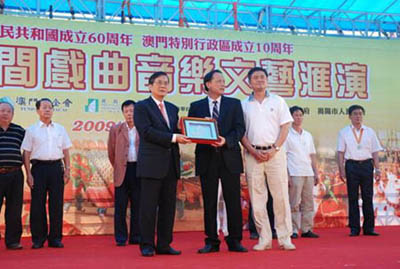 为庆祝中华人民共和国60周年、澳门回归10周年、澳门潮州同乡会成立24周年、澳门潮汕总商会成立7周年、培华中学建校14周年,应澳门潮州同乡会的邀请,广东省汕头市文化广电新闻出版局精心组织,在汕头市直文艺团体挑选优秀的演员组成汕头市艺术团,由汕头市文化广电新闻出版局局长姚英杰任顾问,副局长王小亮任团长,一行45人,于10月14日至17日赴澳门参加系列庆祝活动。演出节目有大型歌舞《欢庆》、《祖国颂》、《为祖国干杯》,潮州音乐《画眉跳架》、《浪淘沙》、《狮子戏球》,舞蹈《绣花舞》、《秦王点兵》、《印度风情舞》,歌曲《共和国之恋》、《祖国,慈祥的母亲》、《精忠报国》,杂技《女子技巧》、《转毯》、《滑稽表演》、《三人技巧》,由广东潮剧院副院长、国家一级演员、中国戏剧梅花奖获得者张怡凰演唱的潮剧《东吴郡主》选段等。艺术团在澳门友谊广场和万豪轩共演出了四场,富有浓郁潮汕特色的精彩节目博得观众的阵阵掌声,受到澳门市民和潮人乡亲的高度赞赏,为澳门系列庆祝活动增添隆重、喜庆的气氛,既联结了乡情梓谊,又展示汕头艺术团体的风采,既传播了潮汕优秀传统文化,又展示了汕头崛起的良好形象,既促进了汕头和广大海内外潮籍乡亲的情谊,又增进了汕头和澳门两地的文化交流。