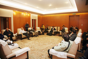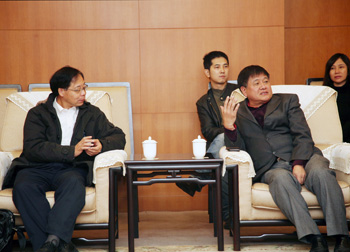 11月3日下午,澳门美术协会会长黎鹰率领二十余位在京参加“庆祝祖国成立六十周年暨澳门回归祖国十周年——澳门美术协会会员作品展”的艺术家到中国美术馆参观访问。中国美术馆副馆长钱林祥热情地接见了来访的客人,并陪同参观了展览。