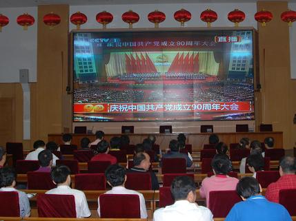 7月1日上午,文化部办公厅党总支、机关服务局党委组织全体党员群众集中收看庆祝中国共产党成立九十周年大会,聆听胡锦涛总书记在会上发表重要讲话。