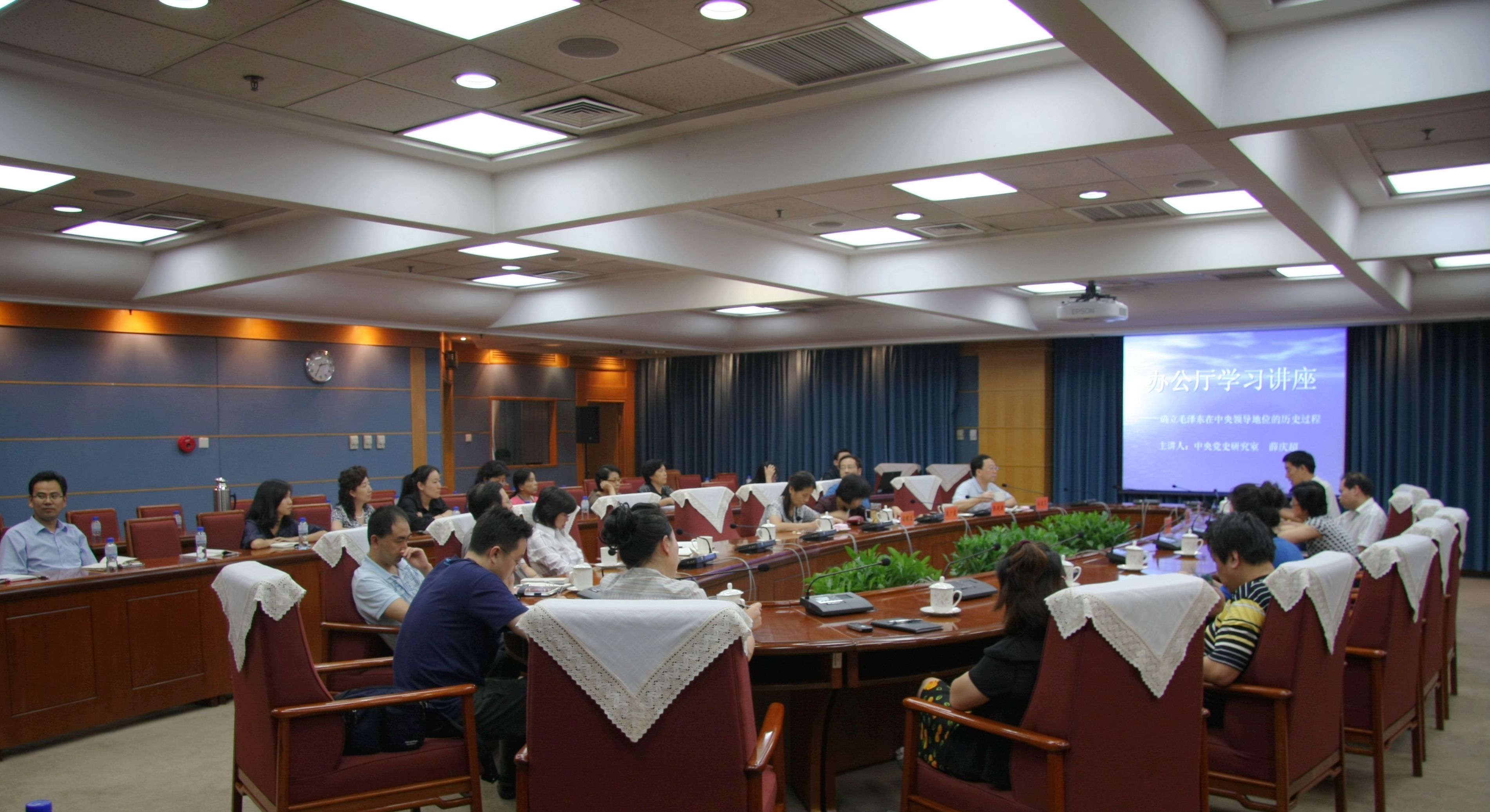 2010年9月16日下午,办公厅举办第四次学习讲座,邀请中共中央党史研究室宣传教育局副局长、教授薛庆超主讲《确立毛泽东在中央领导地位的历史过程》。办公厅主任杨建昆主持讲座,办公厅全体干部及有关司局同志参加。