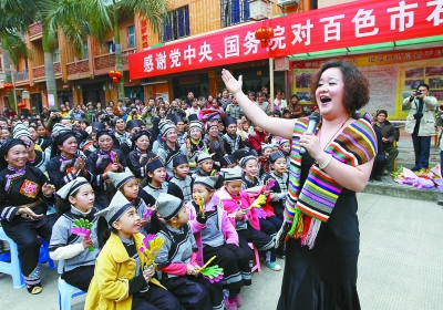 1月9日,文化部艺术家小分队带着党中央、国务院对老区人民的亲切关怀和全国人民的深情厚谊,在文化部艺术司司长董伟的带领下,奔赴革命老区广西百色,慰问当地干部群众。