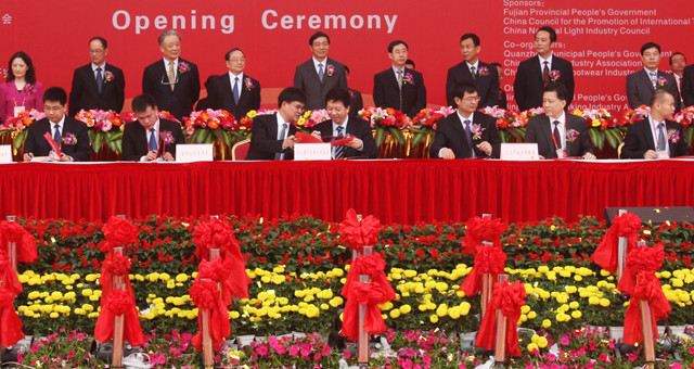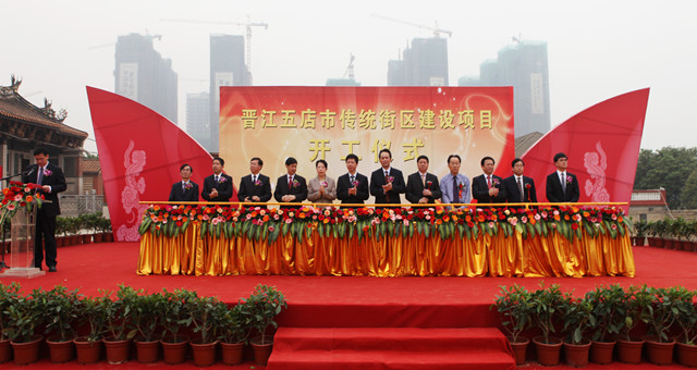 四月的晋江,花红柳绿。新近落成的举办第14届中国(晋江)鞋业博览会的晋江美旗城宏大广场上更是红旗招展,彩球漫天。4月19日上午,随着艳丽的烟火飘带响亮地依次冲上天空,福建省文化厅与晋江市人民政府推进晋江文化繁荣发展战略合作框架协议在这里举行了隆重的签署仪式。仪式由晋江市市长刘文儒主持,福建省文化厅副厅长张远与晋江市常务副市长许宏程分别代表双方签约。原全国人大副委员长蒋正华,省人大常委会副主任张健,省文化厅厅长陈秋平,泉州市委书记徐钢,省文化厅党组成员、省文物局局长郑国珍,晋江市委书记陈荣法,以及中央、省市相关部门,海内外部份著名企业、社团负责人等,与数千名群众共同见证了签署仪式。