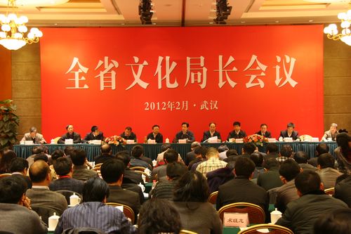 2月9日至10日,湖北2012年全省文化局长会议在武汉召开,省委常委、省委宣传部部长尹汉宁,省人大常委会副主任周洪宇,省政协副主席涂勇,省人社厅副厅长、省公务员局党组书记温兴生,省文化厅领导杜建国、沈海宁、李耀华、段天玲、吴宪、徐永胜,省演艺集团董事长王建刚出席会议;全省各市、州、县文化局长,厅直单位党政负责人参加会议。