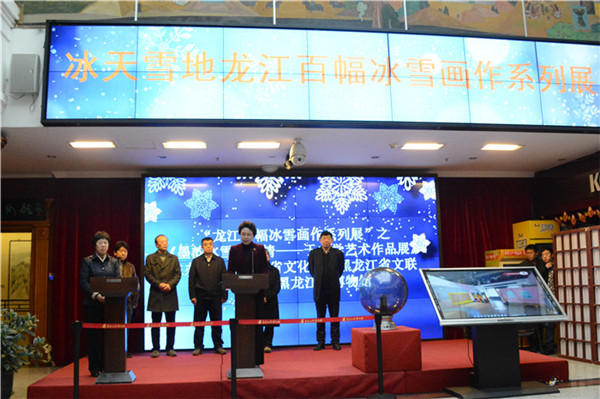 启动“墨韵冰雪北国情”龙江百幅冰雪画作系列展览,展示“冰雪龙江”。全民冰雪活动日上午9时,由省文化厅和省文联共同举办的龙江百幅冰雪画作系列展览在省博物馆正式启动,省委宣传部部务委员庞玉红,省文联主席傅道彬,省文化厅党组书记、厅长张丽娜,著名冰雪画家于志学等省内知名画家及社会各界人士等百余人出席了启动仪式并观看了展览,启动仪式由省文化厅副厅长马军主持,厅长张丽娜发表了致辞。龙江百幅冰雪画作系列展览计划从12月20日到明年3月20日持续3个月时间,在省博物馆陆续向社会公众免费推出“墨韵冰雪北国情——于志学艺术作品展”、“冰舞墨韵北国情——朱晓东冰版画作品展”和“冰天雪地 金山银山——黑龙江冰雪题材优秀摄影作品展”三个系列展,展览以“冰天雪地·冰雪情”为主题,展现“冷逸之美”的冰雪艺术、中国画“白的体系”和龙江冰雪奇观的画意景致,为游客和市民搭建参观鉴赏冰雪艺术作品的平台,展示黑龙江省“冰天雪地”壮美景色。