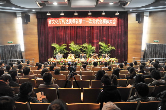 10月18日,辽宁省文化厅召开学习贯彻省第十一次党代会精神报告会。辽宁省文化厅党组书记、厅长周连科在会上传达了省第十一次党代会精神,并结合实际作了题为《建设富庶文明幸福新辽宁》的专场辅导报告。辽宁省文化厅党组成员、纪检组组长佟昭宣读了省委办公厅10月14日下发的《关于认真学习宣传贯彻省第十一次党代会精神的通知》。辽宁省文化厅党组副书记、副厅长许波主持大会。