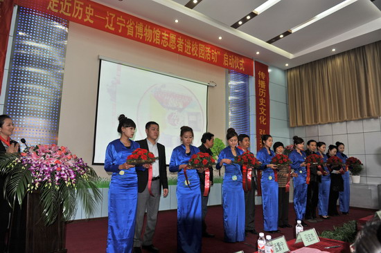 辽宁省博物馆从2011年11月起开展“走近历史——辽宁省博物馆志愿者进校园活动”,旨在履行博物馆“宣传展示、服务社会”的公益性职责,让更多的学生了解古老中国的悠久历史和灿烂文化,传播辽宁省博物馆志愿者“奉献、友爱、互助、进步”的志愿精神,真正发挥爱国主义教育基地的作用。此项活动以沈阳市铁西区轻工街第二小学为试点,辽宁省博物馆志愿者每周四下午都将走进校园,开展系列文化讲座。除了派志愿者走进校园传授文物知识外,辽宁省博物馆将邀请沈阳市铁西区轻工街第二小学的师生走进博物馆,让他们在志愿者的带领下参观展览。
