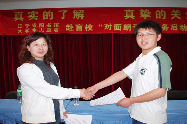 针对盲人读者的“对面朗读”活动。始于2003年的“对面朗读”服务是将盲人和志愿者按预约时间集中到图书馆,让他们进行面对面的交流与沟通,以最直接的方式相互传递有效信息。此外,为了解决盲人读者特别是孩子出行不便的问题,辽图工作人员和志愿者从2005年开始定期走入盲校,为那里的盲童开设“社会实践课”,将文化服务送到盲童身边。游戏、聊天、讲故事,轻松的方式,快乐的内容,深受盲童们的欢迎和喜爱。