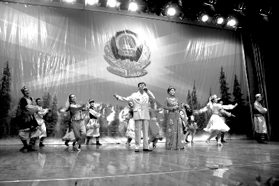 慰问演出在舞蹈《欢庆》中拉开帷幕,女声独唱《东西南北兵》让在场的武警官兵们备感亲切,杂技节目《手技》则让他们连声惊叹叫好,武警总队特勤中队表演的三句半《警营生活》、小品《三姐妹当兵》引来官兵们的欢快笑声,演出在歌伴舞《和谐新疆》中推向高潮,让广大武警官兵感受到了节日的喜庆。