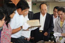 (左图为:参会代表参观自治区图书馆古籍部,翻阅古籍)