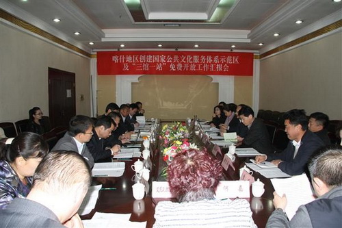 2011年6月,喀什地区被确定为第一批国家公共文化服务体系示范区创建地区,并启动了“两馆一站”即图书馆、文化馆、文化站免费开放工作。示范区创建与免费开放工作开展以来,新疆维吾尔自治区文化厅高度重视,对喀什示范区的创建规划、建立健全组织领导机构、完善制度设计研究方案和宣传方案以及“十二五”规划等创建工作进行指导,对如何推动免费开放工作进行安排部署及督导检查。地区党政领导也高度重视,多次就创建示范区及免费开放工作进行调研,成立了以行署专员为组长的创建工作领导小组,文化等有关部门积极探索,认真谋划,高位推动,扎实工作,切实抓好公共文化设施免费开放和国家级公共文化服务体系示范区创建工作,使全区公共文化各项事业取得阶段性成果。