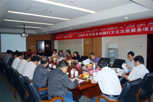 下午,自治区文化厅社文处处长申文涛主持了2012年“春雨工程”——全国文化志愿者边疆行文化志愿服务项目座谈会。会上,各承接单位分别汇报了边疆行项目进展情况并就存在困难和问题进行了讨论。会议最后关红雯做了总结发言,对自治区2012年“春雨工程”——全国文化志愿者边疆行工作给予了充分肯定和高度评价,她说全国边境行项目82项,新疆获得36项(不含兵团),边疆行工作走在了全国的前列。此外,她还表示将积极动员各方面力量,进一步加强对新疆文化事业的支持和援助力度。