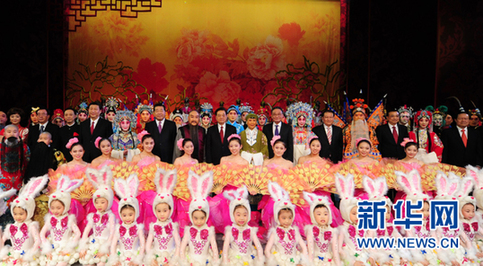 新华网北京12月30日电(记者李斌、周婷玉)檀板声声说盛事,鼓乐阵阵抒豪情。2011年新年京剧晚会30日晚在国家大剧院举行。党和国家领导人胡锦涛、吴邦国、贾庆林、李长春、习近平、李克强、贺国强、周永康,与首都近千名群众一同观看演出,喜迎新年的到来。