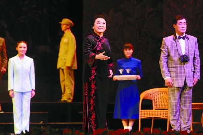 中国文化报记者焦雯 实习生李颖报道:丝绒旗袍、绛红围巾,低挽着发髻优雅踱来,恍惚间,宋庆龄宛在眼前……作为2011年全国现代戏优秀剧目展演的参演剧目之一,7月24日和25日,由北京刘秀荣评剧团创排的现代评剧《宋庆龄与新中国》在北京梅兰芳大剧院上演。25日晚,文化部副部长王文章出席并观看了演出。