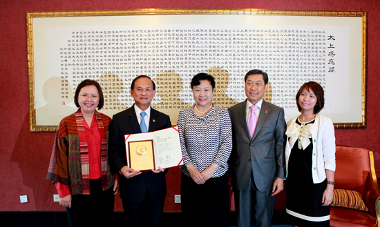 中国文化部授予泰国国家旅游局局长“文化交流贡献奖”