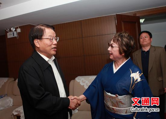 9月16日文化部部长蔡武会见来华访问的日本前参议院议长扇千景一行