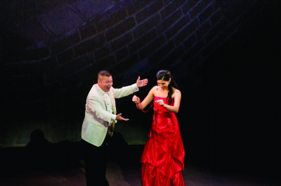 当地时间9月21日晚,《中美音乐庆典》在肯尼迪表演艺术中心歌剧厅举行。图为中国男高音歌唱家迟立明和美国女高音歌唱家尤金妮亚共同表演中国歌剧《白毛女》片段“红头绳”。