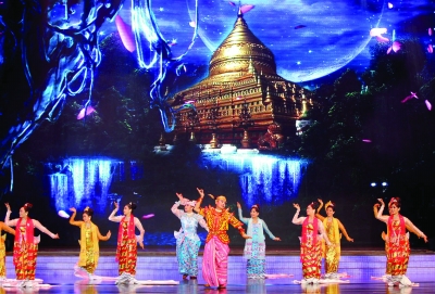 图二 由缅甸艺术团、老挝艺术团、柬埔寨艺术团表演的外国舞蹈荟萃《水脉久相融》