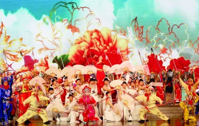 图三 由重庆市歌舞团、重庆市川剧院、重庆市京剧团演出的戏曲舞蹈《粉墨印象》。