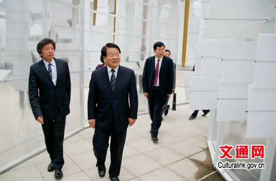 蔡武部长在中国美术馆馆长范迪安先生陪同下参观《山水意园》公共艺术展