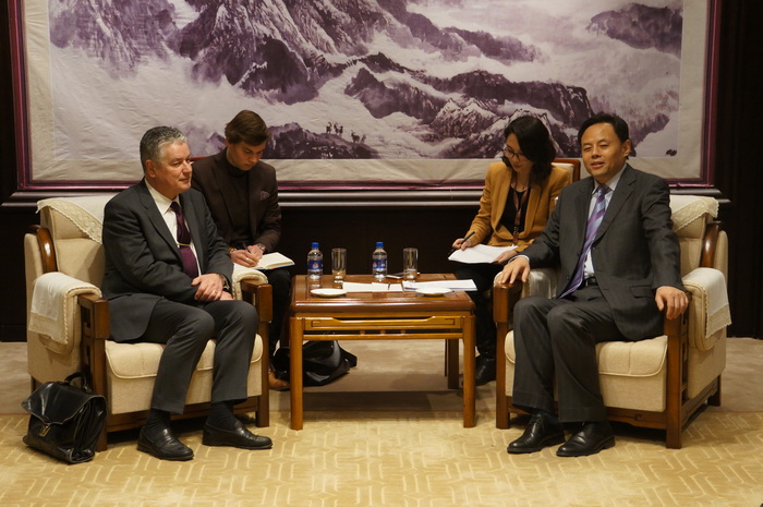 2月13日,文化部党组成员、部长助理于群会见了新任比利时驻华大使马文克。