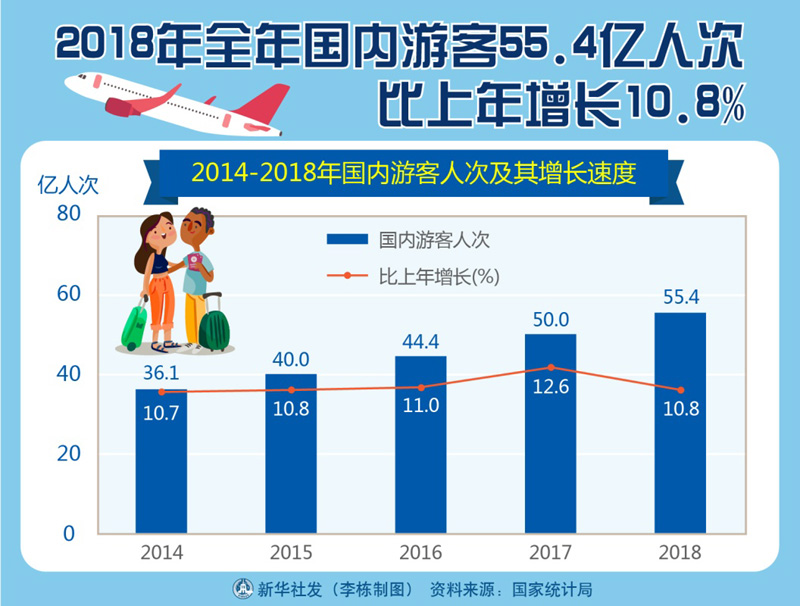 图表:2018年全年国内游客55.4亿人次 比上年增长10.8%