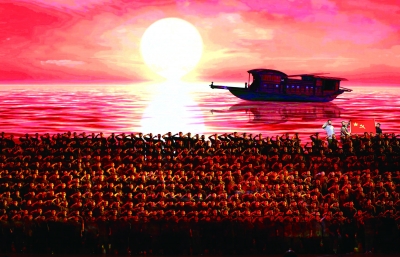 毋庸讳言,既要用迅速流动的艺术时空呈现历史线索,又要用艺术感染观众,这是一个难度极高的艺术任务。然而,晚会完成度相当精准。其奥妙,当是点面融合得相当巧妙。举例来说,如此宏大历史的艺术表达,从何而起?整场演出,从序曲《没有共产党就没有新中国》开始,用意很深。开宗明义,气势磅礴,自信满满!新中国之新,不是简单的1949年10月1日的历史翻页之新,其背后是近现代以来中华民族苦苦追求伟大复兴的艰苦卓绝斗争,是终于找到了马克思主义与中国革命历史相结合的道路之新。那么,这条全新的道路,又如何转化为整场演出的艺术起点呢?