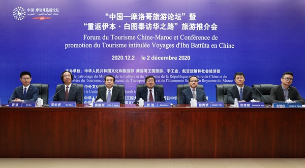 为落实好习近平主席与摩洛哥穆罕默德六世国王关于“以举办中摩旅游文化年为契机,共同规划疫情后双方人文合作蓝图”的共识,12月2日,作为中摩旅游文化年预热活动之一的“中国—摩洛哥旅游论坛”暨“重返伊本·白图泰访华之路”旅游推介会以线上形式成功举办。摩洛哥旅游、手工业、航空运输和社会经济大臣阿拉维、中华人民共和国文化和旅游部副部长张旭、摩洛哥文化、青年和体育部秘书长阿菲菲、摩洛哥驻华大使梅库阿尔、中国驻摩洛哥使馆临时代办茅俊出席活动并致辞。