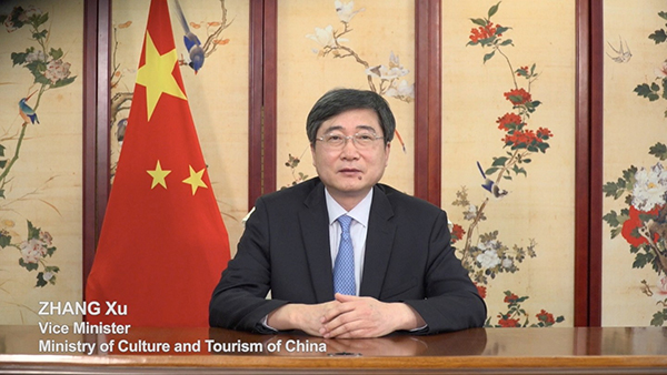 中国文化和旅游部副部长张旭在发言中表示,中国人民经过长期艰苦奋斗,全面建成小康社会胜利在望,脱贫攻坚取得全面胜利。在这样的历史条件下,我们着眼战略全局,对“十四五”时期文化建设作出部署,为繁荣发展文化事业和文化产业制定了时间表和路线图。张旭强调,文化对于疫后恢复、提振民众信心、催生新业态、提升社会复原力和推动可持续发展等方面的作用和贡献不断凸显。中国文化和旅游部出台了多项政策举措,有效防控疫情,文化部门复工复产取得积极成效。张旭呼吁各国共同努力,进一步促进文明交流互鉴和文化间对话,为构建人类命运共同体、促进世界和平与发展作出更大贡献。